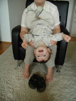 Dolu hlavou - žiaden problém pre malého akrobata.